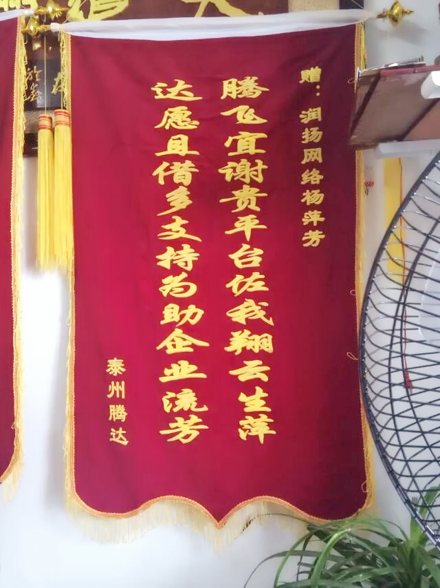 7月24日上午,泰州腾达建筑工程机械有限公司来到润扬网络策划,将锦旗送到我司客服部经理杨萍芳的手中,这是客户表达的感谢之情,也是对润扬成军一年多时间里不懈努力的肯定。