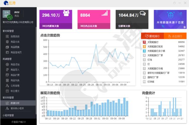 截止2019年9月9日,只百度爱采购平台的曝光量已经累计1044.84万,日点击次数已经上百,询盘量持续稳定。