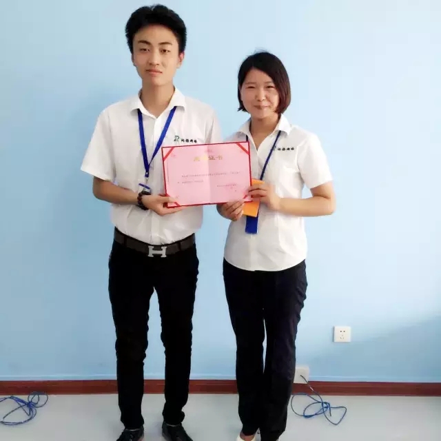 销售部周苗苗(右)荣获“佳新人奖”,图为其与搭档谢亮合影