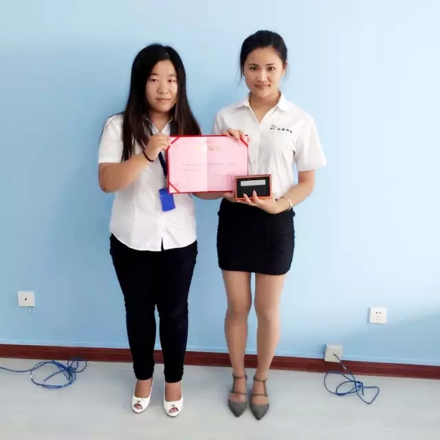 销售部仲伟娟(右)喜获“佳进步奖”,图为其与搭档刘媛蓓合影